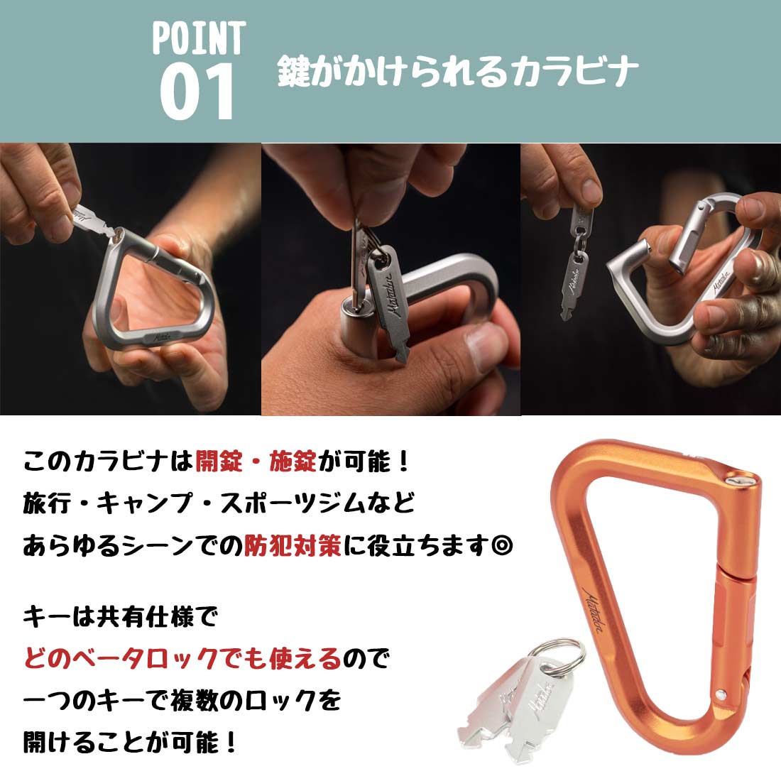【MATADOR マタドール BetaLock ベータロック カラビナ 鍵 自転車 バッグ 荷物 防犯 アウトドア キャンプ 旅行 スポーツ