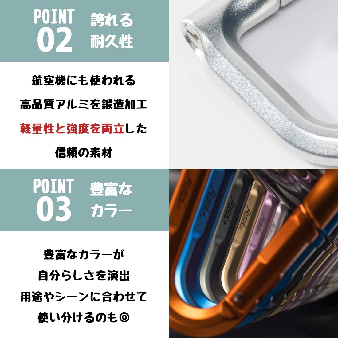 旅行用に設計されたカラビナ式ロックです。この鍵がかけられるカラビナは、素早く取り付けることができ付属のキーで簡単に開錠、施錠ができます。旅行はもちろんキャンプや登山、スポーツジムなど様々なシーンで使用ができ、防犯対策に役立ちます。旅行時など複数の荷物をまとめてロックしたり、バッグのジッパー引手をロックすればスリなどの防犯対策になります。またバッグに水筒や帽子、サンダルなど、身の回りのアイテムの吊り下げもロックができるので安心です。TSA規格に準拠した航空機グレードのアルミニウムから鍛造されています。