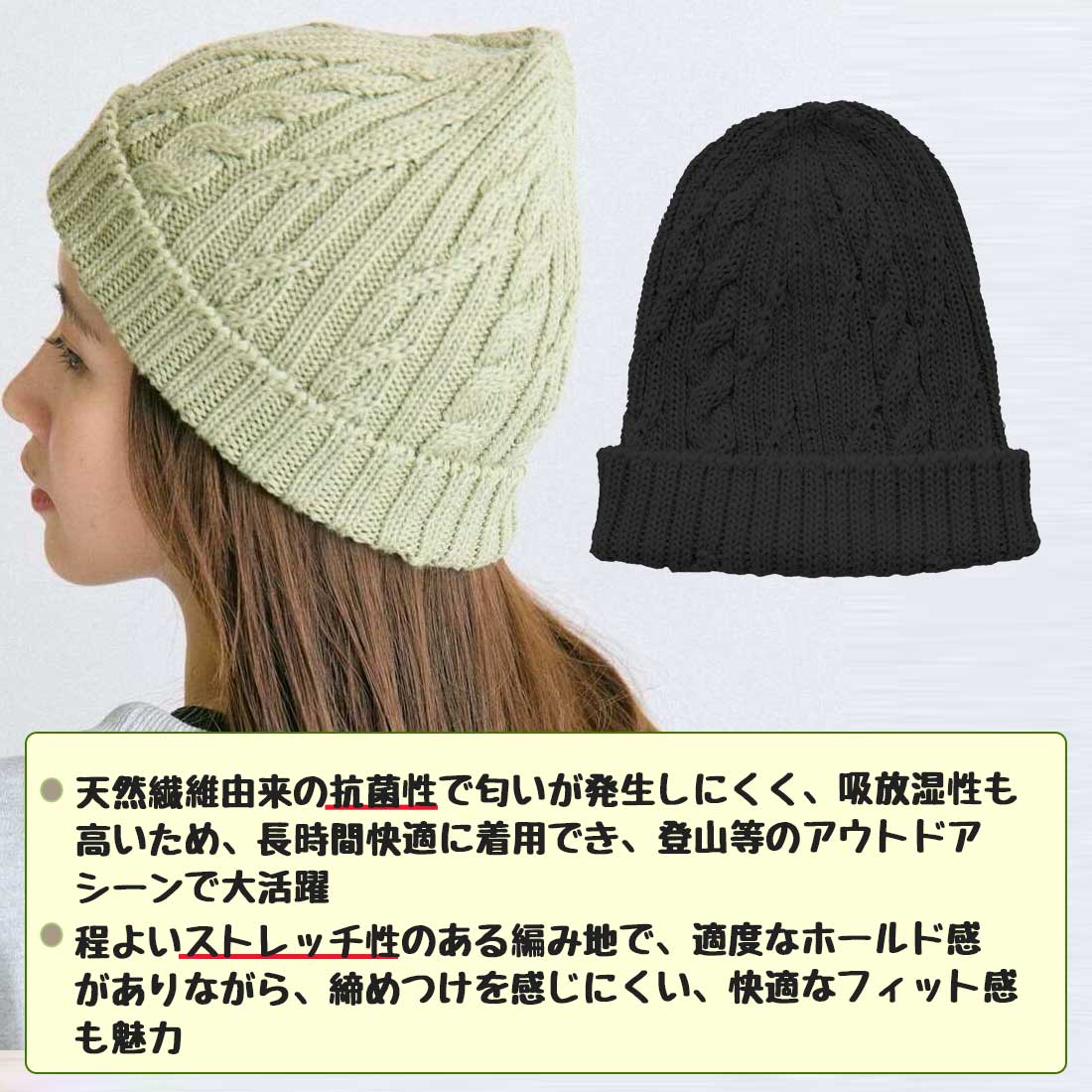 エクストラファインメリノウール70%と、再生ポリエステル30%を使用しており、機能性と環境への配慮を両立させているニットキャップです。
